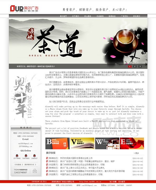 网站名称:奥尔广告 网站编号:1029 网站类别:灰色、白色、简约、更多+ 网站评述:不走寻常路的首页构图,体现了广告公司独树一帜的创意。